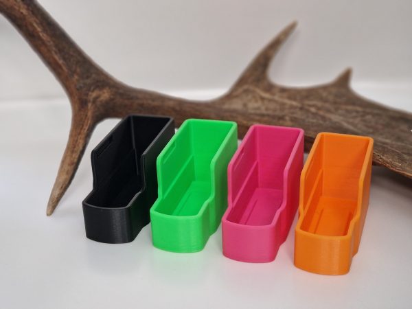 Der Magnethalter für Das Magazin besticht durch sein ansprechendes Design und gute Hafteigenschaften auf magnetischen Oberflächen. Der Halter wird aus umweltfreundlichen PLA im 3D-Druckverfahren hergestellt. Holen Sie sich jetzt diesen praktischen Halter für Ihren Waffenschrank und sorgen Sie für eine ordentliche und sichere Aufbewahrung Ihres Magazins. Der Magazinhalter kann in jeder erdenklichen Position angebracht werden, da das Magazin in dem Halter einrastet. Die Montage über Kopf ist ohne weiteres möglich, und nutzt den Raum im Waffenschrank effizient aus.